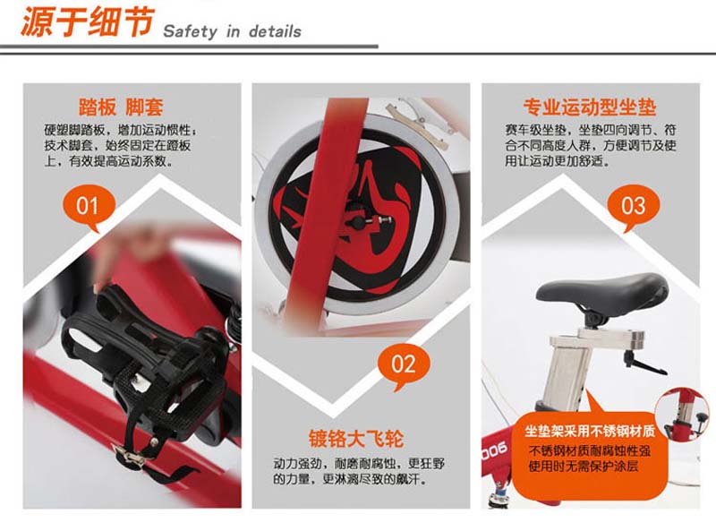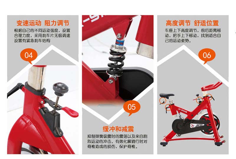 5、齿轮盘:采用高强度链条传动,可适应向前向后蹬车训练。功 能:可锻炼腿部肌群力量